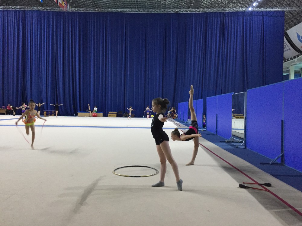 Турнир проходил в замечательном Дворце Спорта. Много площадок для подготовки к соревнованиям в разминочной зоне, прекрасный гимнастический помост и специальное освещение создавали неповторимую атмосферу. В турнире соревновались гимнастки их Узбекистана, Казахстана, Киргизии и России. Было много сильных соперниц, но наши не подвели! Выступили достойно!
